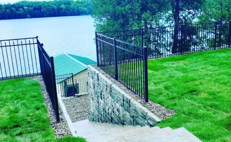 LakeEffect Group proudly presents a testament to our commitment to harmoniously blend nature’s elements with architectural excellence. This endeavor unfolds with a natural cedar stairway, black metal railings, stone walkways, and an interlocking retaining wall leading to the waterfront.